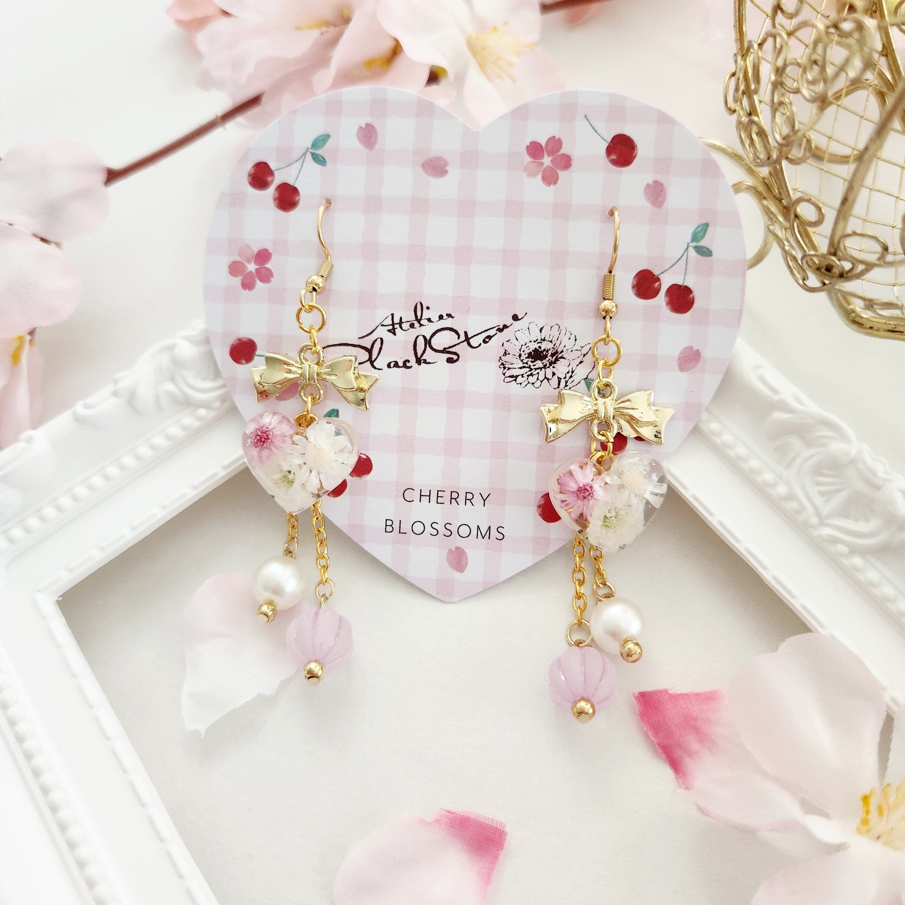 リボン、ハート、パールにパステルカラー。女の子の大好きを集めた甘々耳飾りができました♡