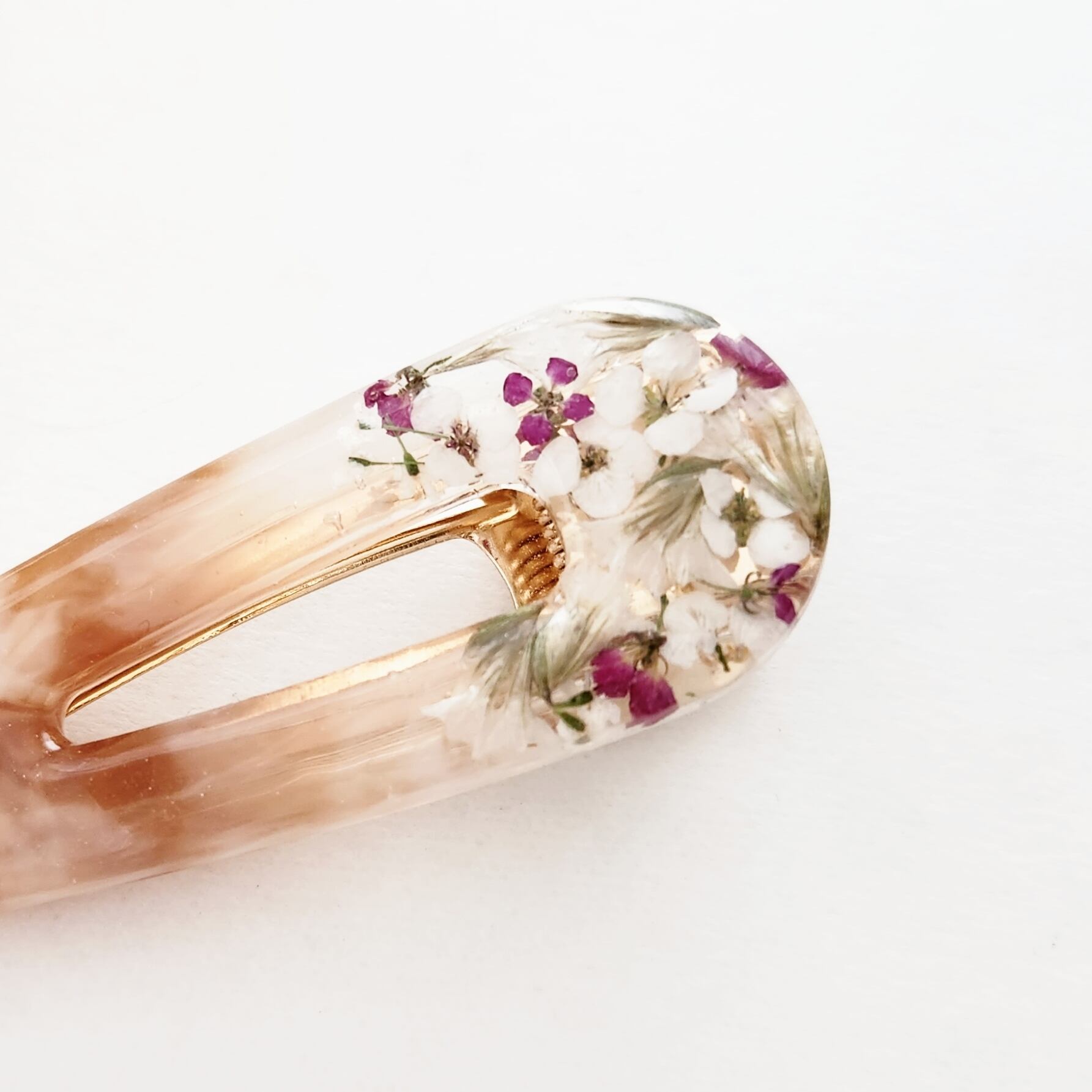 ドライフラワーの大人可愛いマーブルヘアクリップ୨୧